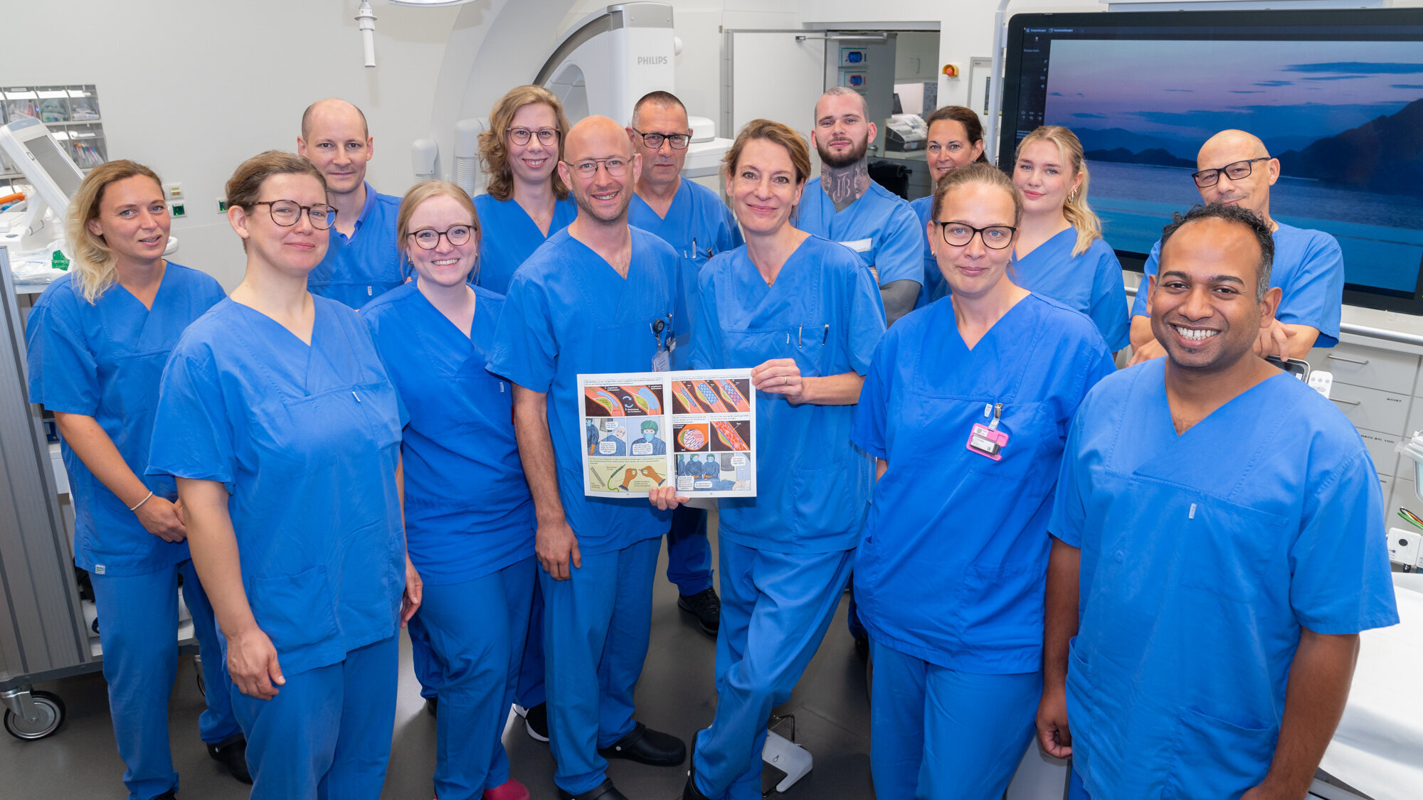 Das Team der invasiven Kardiologie und Angiologie an der Klinik für Kardiologie, Angiologie und Intensivmedizin am Campus Charité Mitte.
