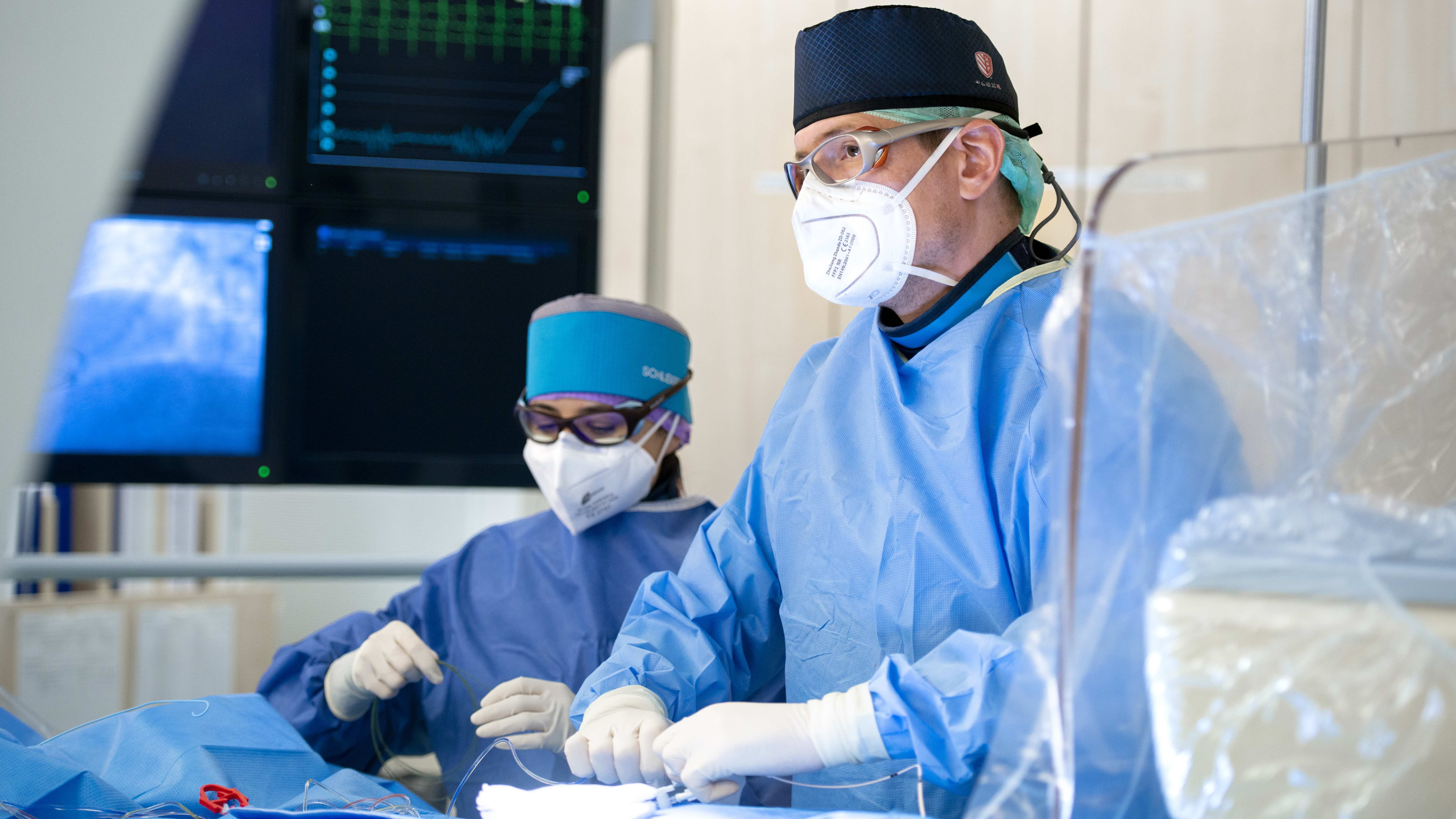 Unsere Abteilung verfügt über ein hochmodernes Echolabor, spezialisierte Bildgebung mittels Computertomographie (CT) und Magnetresonanztomographie (MRT) sowie mehrere Herzkatheter-Labore – einschließlich Hybrid-Operationssälen. Wir bieten alle etablierten kathetergestützten Verfahren an: