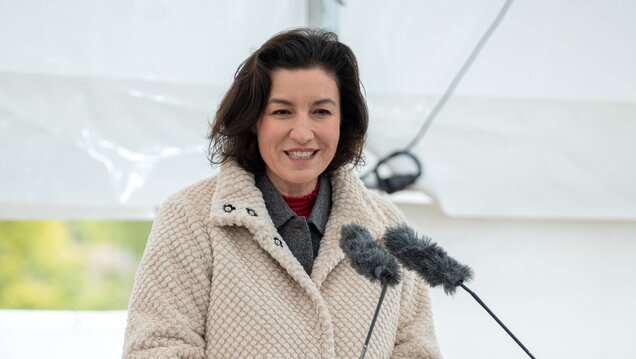 Bundesministerin für Bildung und Forschung Bettina Stark-Watzinger bei ihrer Rede (Copyright: DHZC/Andrea Vollmer).